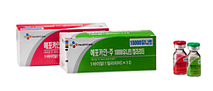 무색 또는 미황색을 띠는 투명한 액이 들어있는 무색 투명한 바이알